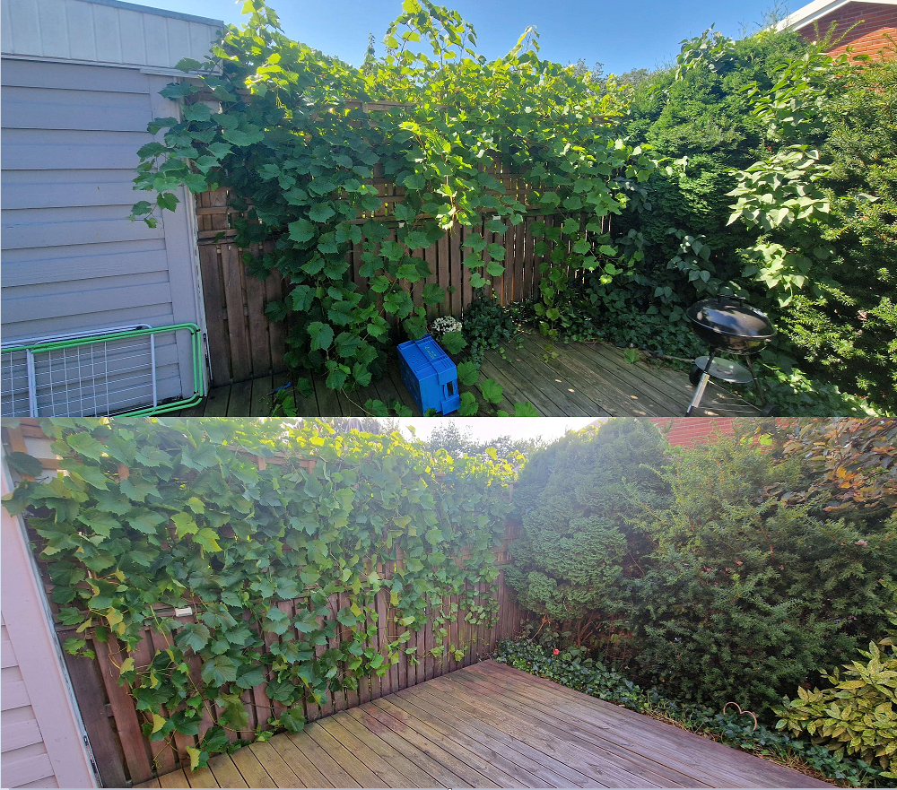 Arbete i trädgård där buskarna beskars noggrant, och slutresultatet nu ger ett vårdat, prydligt och välordnat intryck. Genom omsorgsfull beskärning har växterna fått bättre förutsättningar för tillväxt och hälsa. Trädgården upplevs nu både mer harmonisk och lättskött, med ett intryck som inbjuder till avkoppling och trivsel.